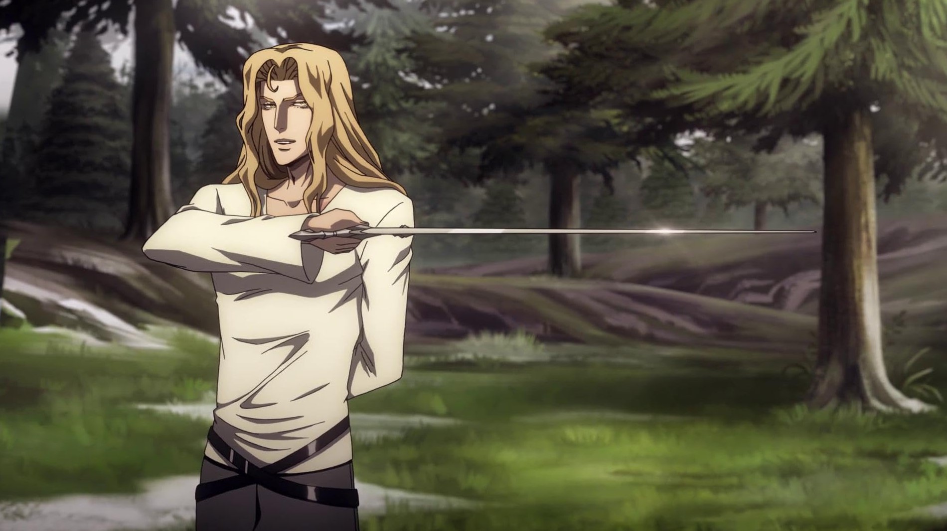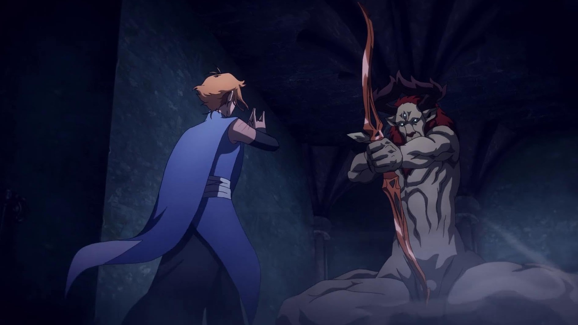 Plus dense, cette saison demeure forcément plus frustrante puisqu’il faudra attendre la prochaine pour découvrir la conclusion de certaines intrigues. Notons également que si l’animation gagne légèrement en fluidité, l’action se montre moins présente, principalement cantonnée à l’Episode 9 (le meilleur de la saison), mouvementé, comprenant quelques somptueux plans et faisant de l’intrigue d’Alucard et celle d’Hector un élégant jeu de miroirs. L’épisode 10 n’est pas en reste grâce à son impressionnant ballet sanglant entre Trevor, Sypha et une cohorte de créatures aux inspirations Lovecraftiennes, parfaitement découpé, usant de la 3D à travers certains travelings et se posant comme une superbe conclusion avant qu’une vérité morbide n’éclate. Une façon pour Castlevania de ne pas nous faire oublier qu’au delà de son statut d’adaptation, la série a réussi à s’approprier un univers afin de jongler entre grand spectacle, réflexions philosophiques et sombre atmosphère.
