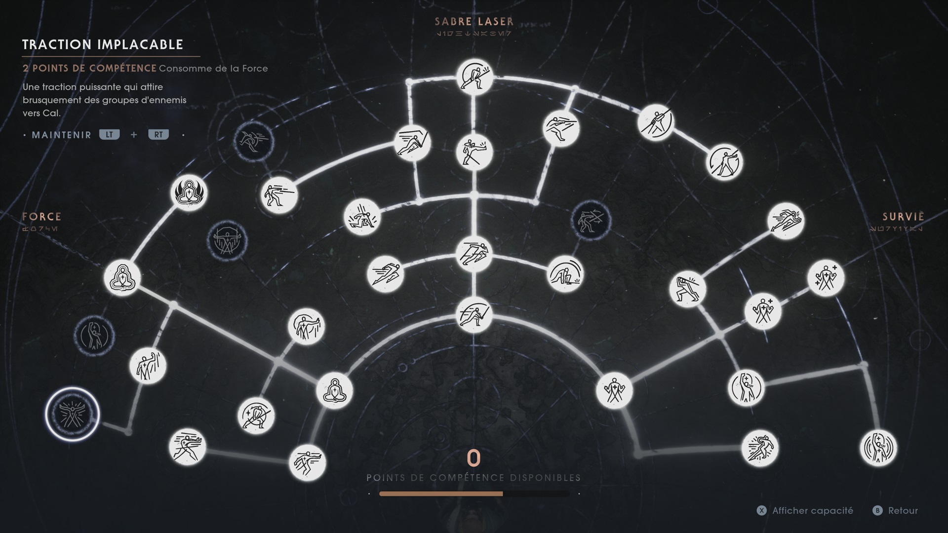 Côté action, Star Wars Jedi : Fallen Order met en avant un système de combat hérité, dans une certaine mesure, de ceux des jeux From Software. Proposition étonnante mais intelligente d’autant qu’elle vous réclamera patience et maîtrise. Sachez dans un premier temps que vous aurez le choix entre quatre niveaux de difficulté, Facile (Mode Histoire) à Très Difficile (Grand Maître Jedi), ceci influant sur l’agressivité de vos adversaires, leur puissance mais aussi et surtout la fenêtre de parade. En Normal, le jeu reste parfaitement équilibré et hormis les deux derniers combats de boss, vous devriez vous en sortir sans trop de heurts malgré un aspect Die & Retry. A ce sujet, retenez que la jauge d’’Expérience que vous remplirez (en éliminant des ennemis) et qui vous servira à débloquer des points de compétences pour obtenir différents moves, augmenter votre niveau de santé et de Force ou améliorer votre garde, se videra entièrement à chaque mort. Vous pourrez toutefois récupérer l’exp perdue en touchant l’adversaire qui vous a occis à l’image de ce qu’on trouve dans les Souls. Dans tous les cas, un système de check points évitera de créer de la frustration inutile. En plus de vous permettre de sauvegarder et d’acquérir les compétences décrites plus avant, vous pourrez retrouver l’entièreté de votre santé ainsi que vos capsules Stim. Attention toutefois car vous ferez également réapparaître tous les ennemis.