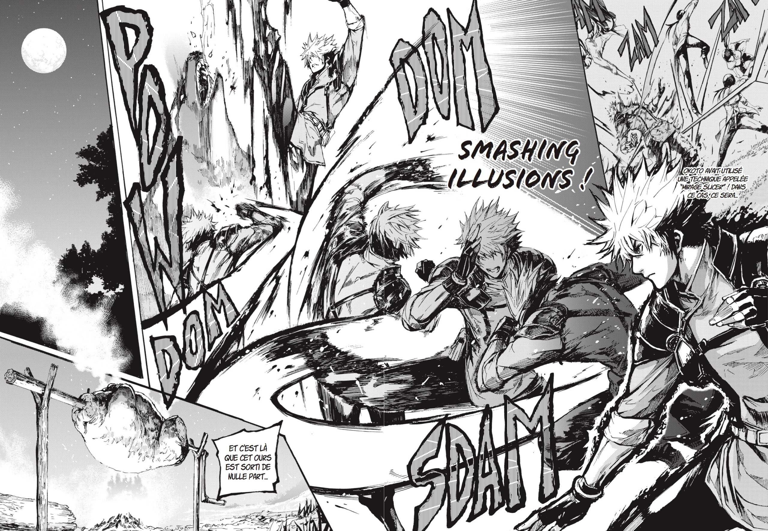 Au delà des villes et villages, la faune de Outlaw Players se révèle disparate et promet des rencontres musclées tout au long des 6 premiers tomes. Hydres, loups-garous, gobelins, monstres marins, les affrontements se suivent et ne ressemblent pas d’autant qu’en fonction de l’avancée de l’histoire, Sakuu maîtrise de plus en plus la puissante relique qu’il porte au bras droit jusqu’à l’affrontement titanesque contre Taargis, énorme PNJ en armure faisant fortement penser à l’Alphonse de Fullmetal Alchemist. D’ailleurs, de cet affrontement découle un arc qui continue encore aujourd’hui faisant état d’une machination fomentée par la dénommée Elicia et soutenue par l’impitoyable (et très classe) Belith, elle-même détentrice d’une relique. Si pour l’heure, le tout semble un peu confus, les nouvelles recrues (à commencer par la sniper Lyséa) se succédant rapidement en parallèle d’une intrigue se mettant progressivement en place, il est difficile de lâcher un volume dès lors qu’on l’a commencé. Ceci tient comme je le disais plus haut au rythme haletant du manga et à la symbiose parfaite entre les protagonistes. Le Tome 6 ne fait d’ailleurs pas exception à cet état de fait avec une narration jouissive au possible, le trio Duranzan/Okoto/Aefka fonctionnant parfaitement bien, de superbes planches mettant en avant certaines invocations (un renvoi direct aux RPG) ou bien encore la promesse d’un tournoi à venir, une constante dans les shonen.